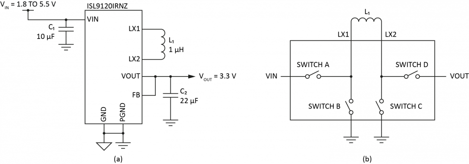 再看看了 除了明顯的安全優勢外,即使在傳統SE探頭無效的低壓電路中,您也可以提取重要信息。典型的應用程序是任何具有重要浮動節點的應用程序,一旦鱷魚夾咬傷,這些浮動節點本身就很容易被地面返回環路折疊!順便提一下,存在許多系統,其中顯著的共模噪聲使得SE測量無用。 考慮所示的簡單嵌入式DC / DC電源電路。從快速瀏覽(圖3a)可以看出,功率電感器是接地還是浮動。這是一個復雜的圖像,因為電感電流是由幾個因素決定的; 即V IN,V OUT和靜態直流負載電流的絕對值。它是一個有趣的差分測量測試案例。 SL9120是一種多模轉換器集成電路(IC),能夠進行降壓,升壓或直通操作。四個內部IC開關環繞電感(圖3b),確定電流。考慮到所有開關組合,很難解除電感器兩端出現的瞬時電壓(LX1和LX2)。除此之外,還有各種開關模式,使觸發變得復雜,并且該電路需要差分探頭。下一次我們將使用PicoScope 4444深入挖掘電感器兩端的電壓。 PicoScope 4444具有靈活性,精確性和差分輸入的安全性,可增強任何工程師的工作臺。此外,可以使用簡單的BNC到D型適配器,以便在需要的時候使用傳統探頭。但PicoScope 4444的優雅源于消除麻煩的接地環路。一個小小的創新步驟,有助于避免令人震驚的短路,平息各地工程師的神經。