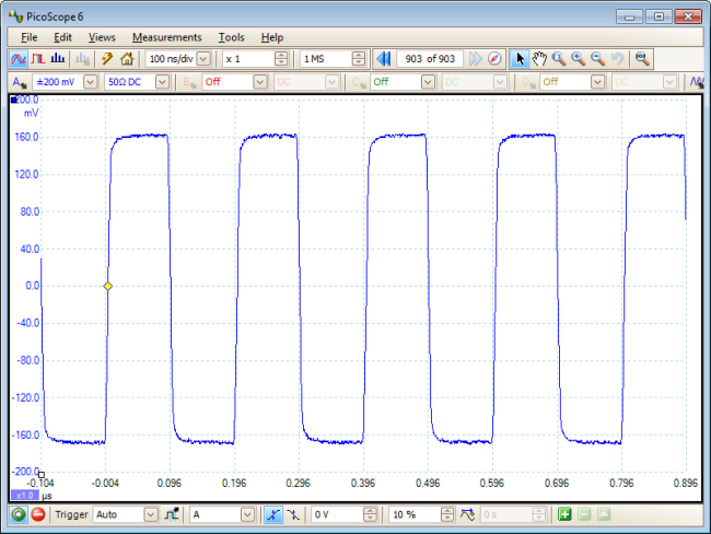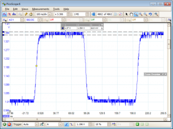 在典型低電平信號(LVDS線)的示例中,我們的PicoScope示波器的模擬偏移功能使我們能夠?qū)x器的靈敏度提高十倍。這使垂直測量分辨率提高了十倍。交流耦合雖然對穩(wěn)定波形(例如電源軌上的紋波)很有用,但對串行數(shù)據(jù)流的使用有限。