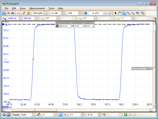 使用的示波器是PicoScope 6404B,一個4通道500 MHz儀器,具有8位分辨率。我們使用了模擬LVDS信號。