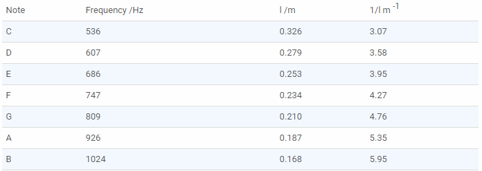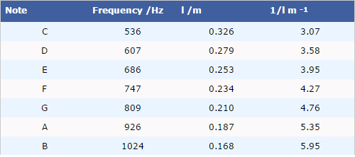 結(jié)果 測(cè)量一個(gè)音符的頻率將給出聲速的粗略值。一種更好的技術(shù)是測(cè)量幾種不同音符的f和l,并繪制圖形。