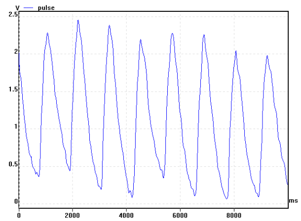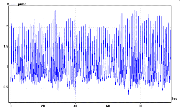 結(jié)果 下面的圖4和5顯示了使用脈沖體積描記器獲得的跡線。 如實驗中所述,使用這些跡線可以計算逐拍(瞬時)心率。