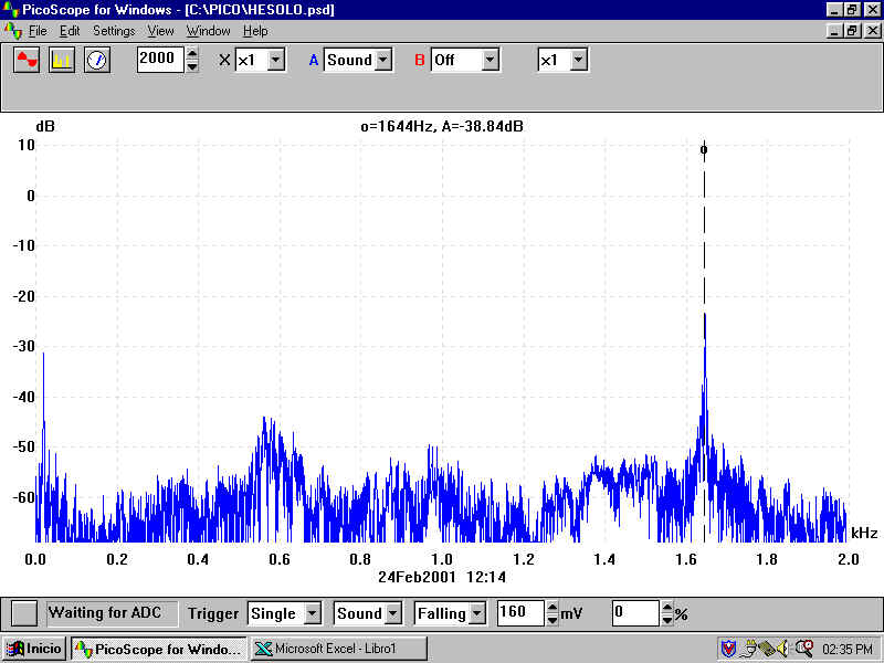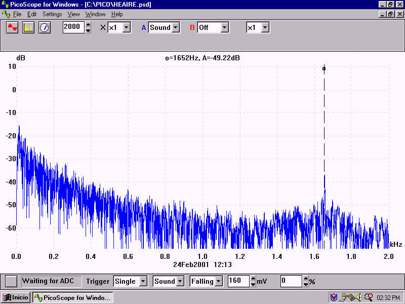 實驗結(jié)果 我們在步驟1中得到一個頻譜,如圖1所示。我們在該頻譜上標(biāo)記頻率1644.然后我們在風(fēng)扇打開的情況下進(jìn)行測試并觀察頻率的變化,因為最強(qiáng)的頻率轉(zhuǎn)移到1652 Hz點(圖2) )。