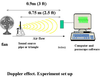 我們將使用由風扇產生的氣流來模擬所需的條件,以顯示多普勒效應如何改變觀察到的聲音頻率。 通過敲擊管道或樂器(三角形)產生頻率。Picoscope軟件用于記錄生成頻率的頻譜。當我們在風扇產生的氣流內進行實驗,擊中相同的管道或樂器(在氣流內)并比較風扇開啟前后的觀察頻率時,觀察到頻率的變化。 在您進行實驗之前,我們建議您了解多普勒效應的理論,并考慮該原理的應用(測量高速公路和警察的速度,宇宙的速度和膨脹)。在這種情況下,頻率的源或觀察者沒有速度,但是當風扇接通時,攜帶空氣的速度發生變化。根據實驗設置,您可以觀察到源頻率的正或負變化。如果氣流來自源頻率(它模擬源頻率速度),并且當氣流來自觀察者時(模擬DrDAQ速度或觀察者速度),您可以觀察到負變化。