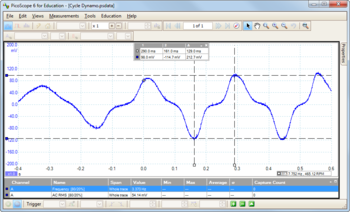分析結果 為了測試設置,手柄轉了幾圈。PicoScope示波器軟件設置為單次觸發以捕獲結果。預觸發(40%)用于顯示觸發事件之前和之后的信號。PicoScope屏幕截圖顯示結果: