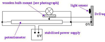 所需設備 ?DrDAQ數據記錄器 ?穩定電源[或干電池串聯連接以提供合適的電壓] ?一米[或更長時間]電位器板 - 標準物理高級電力設備 ?標準實驗室MES鎢絲燈支架[本實驗中使用的6伏手電筒燈] ?黑暗的房間