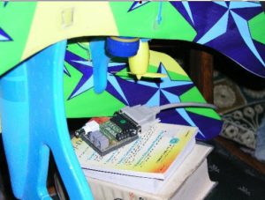 為了測量RPM,模型飛機以垂直位置系在椅子上,使螺旋槳朝下(如圖1所示)。手電筒固定在頂部,而DrDAQ數據記錄器保持在底部。DrDAQ的距離通過將其放在幾本書上進行調整,小心不要將它放在離螺旋槳太近的地方。