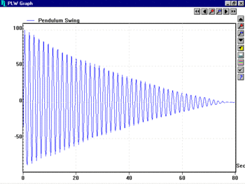 其中g = 9.78 m / s2,l = 0.76 m 在地球上給定的位置,其中g是常數,公式表明振蕩周期T僅取決于擺的長度l。此外,即使當振動的幅度由于系統中的損失(例如空氣阻力和電位計的摩擦)而減小時,周期也保持不變。 由于我們沒有點大小的質量,我們必須對擺的有效長度做出假設。這里使用的長度l是桿的長度(0.7米)+懸掛線的長度(0.015米)+質量長度的一半(0.045米),總有效長度為0.76米。 這給出了大約1.75秒的理論振蕩周期。 使用上圖,我們可以在60秒內計算35次振蕩,振蕩周期約為1.71秒。因此,結果與上述計算一致,允許做出假設。