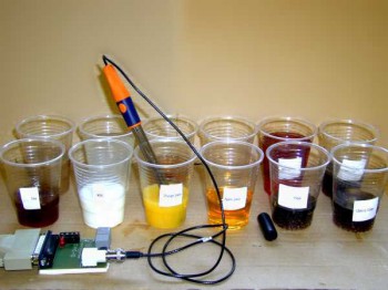 實驗設置 用等量的液體填充所有杯子,這將覆蓋pH探頭尖端。 標記杯子以便以后識別它們。 將pH探頭插入DrDAQ并運行PicoLog軟件。 您可以選擇使用緩沖溶液校準pH探頭。 重要的是允許所有飲料在室溫下穩定,因為pH讀數隨溫度變化。