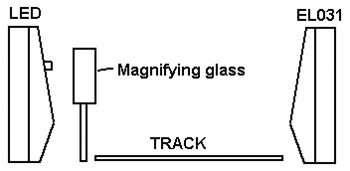 請(qǐng)注意,ADC-11的數(shù)字輸出(DO)用于為L(zhǎng)ED供電,并提供EL031兩端的電壓。設(shè)置光傳感器,使其直接位于LED線上。結(jié)果發(fā)現(xiàn),當(dāng)LED發(fā)出的光在放大鏡的幫助下聚焦時(shí),可以獲得更好的效果。軌道本身設(shè)置為橢圓形,具有以下部分: