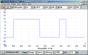 2. PicoScope 2205示波器設置 配置好終端程序后,我們就可以發送串行數據了。終端程序將通過RS-232格式的串口發送數據。圖9顯示了串行端口上常見的DB9和DB25型RS-232連接器的引腳分布。 將2205示波器探頭連接到連接到發送數據終端#3的中心導線,將接地導線連接到接地端子#5。請注意,此設置適用于DB9連接器。根據DB25進行相應調整。 為了捕獲一次性異步信號,必須將范圍設置為一次性觸發。 將儀器設置如下: TxData至輸入A,+ / - 20V,DC,探頭x 1,輸入B關閉 時基=500μsec/ div 觸發=單,輸入A,上升,1000 mV,-10%延遲 請注意,示波器設置為在輸入A上上升電壓> 1伏時觸發。