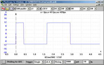 進一步的問題 1.圖6中顯示的波形是否與ASCII'8'的波形相匹配? 2.如果將數據速率更改為4800位/秒,有多寬?