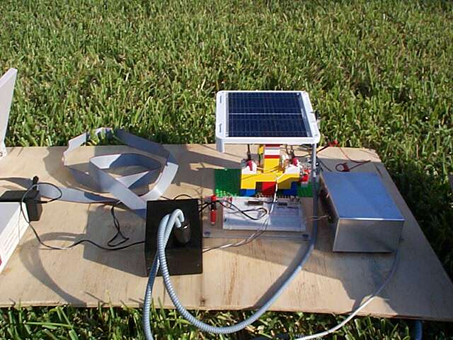 跟蹤器右側的框是串口到數(shù)字轉換器盒。盒子向前和向左是裝有DrDAQ的盒子。注意光管從盒子到跟蹤器。