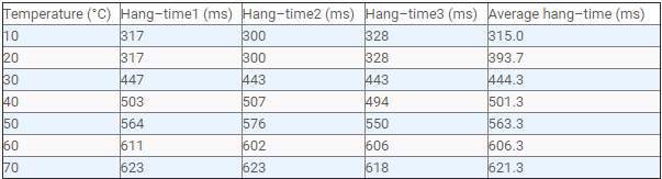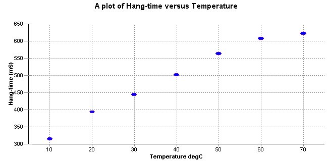 圖3中的表格顯示了我們從實驗中獲得的結(jié)果,以及每個溫度的計算平均懸掛時間。然后將平均懸掛時間與溫度作圖,如圖4中的圖表所示。