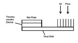 實驗設置 構造發電機的基本要求是熱電裝置和來自熱板的熱源。然而,由于任何熱電裝置都是非常好的導熱體,很快顯然冷板的溫度緊跟熱板的溫度,除非從冷板提取熱量。因此,另外的要求是冷板安裝在散熱器上,散熱器通常由風扇冷卻以保持相對恒定的溫度。實驗安排如下圖3所示。