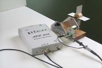 所需設備 ?旋轉軸系統,可圍繞該旋轉軸系統纏繞螺紋,使得螺紋上的載荷導致軸旋轉。 ?微型直流電動機,與旋轉軸連接,起到發電機的作用。 ?一種將空氣阻力阻尼引入軸旋轉的方法。 ?PC示波器,例如帶有PicoScope軟件的ADC-200。 現成的設備由Lascells Ltd制造,并且可以從Technology Supplies Ltd. Phoenix House,Tern Hill,Market Drayton,Shropshire獲得230-114和230-115的產品。聯系電話。01630 637300.另外,系統可以從Lego等構建。可以從Pico Technology購買PC示波器。