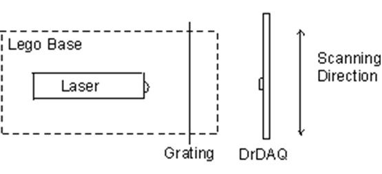 將激光指向和光柵固定在適當的位置(使用樂高積木),并將衍射圖案顯示在距離光柵約5cm的白卡上。卡被移除,DrDAQ數據記錄器放在原位。