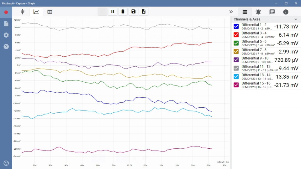 從這里開始捕獲很簡單:插入記錄器,添加頻道,按Record,然后記錄!PicoLog 6還包括許多其他功能,以滿足數據記錄需求。