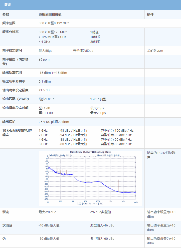 ·1 GHz時典型的-100 dBc / Hz相位噪聲和10 kHz偏移