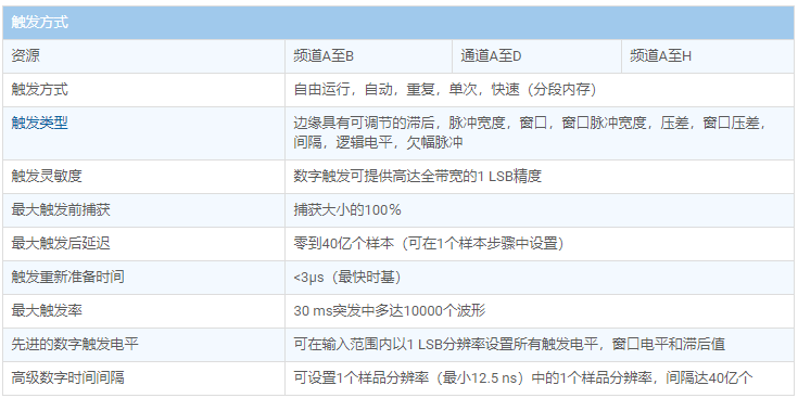 數字觸發提供的減少的重新啟動延遲以及分段存儲器,可以捕獲快速順序發生的事件。以最快的時基,快速觸發可以每3微秒捕獲一次新波形,直到緩沖區已滿。