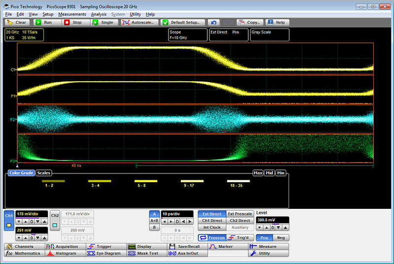 PicoScope 9300系列示波器支持最多四個同步數學組合或采集波形的功能轉換。