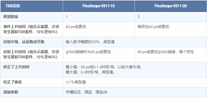 PicoScope 9311-20 TDR / TDT型號包括1 ps分辨率的源偏移校正和全面的校準,參考平面和測量功能。可以對時間或距離繪制電壓,阻抗或反射系數(ρ)。