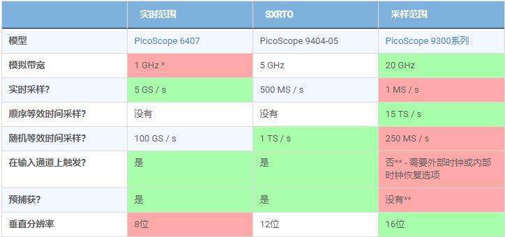我們編譯了一個表來顯示本頁提到的范圍類型之間的差異。示例產品均為緊湊型4通道USB PicoScope。