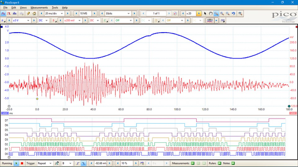 曾經在波形上發現了一個小故障,但是當你停止它的范圍時它已經消失了?使用PicoScope,您不再需要擔心丟失毛刺或其他瞬態事件。PicoScope可將最后一萬個示波器或頻譜波形存儲在其圓形波形緩沖器中。