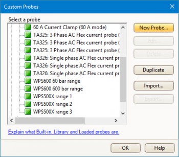 軟件中包含標準Pico提供的示波器探頭和電流鉗的定義。