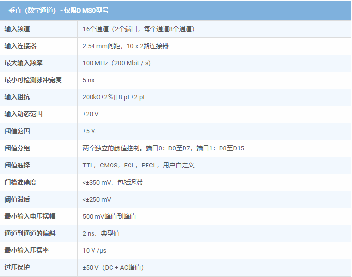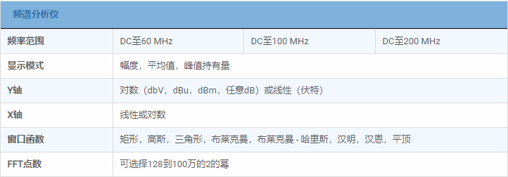 這些示波器提供2或4個模擬通道和一個內置功能/任意波形發生器。MSO模型增加了16個數字頻道。關鍵性能指標: