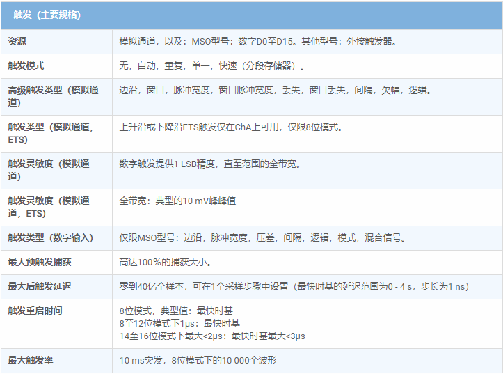 數字觸發提供的低于1μs的重新延遲以及分段存儲器允許在10 ms突發中捕獲多達10 000個波形。