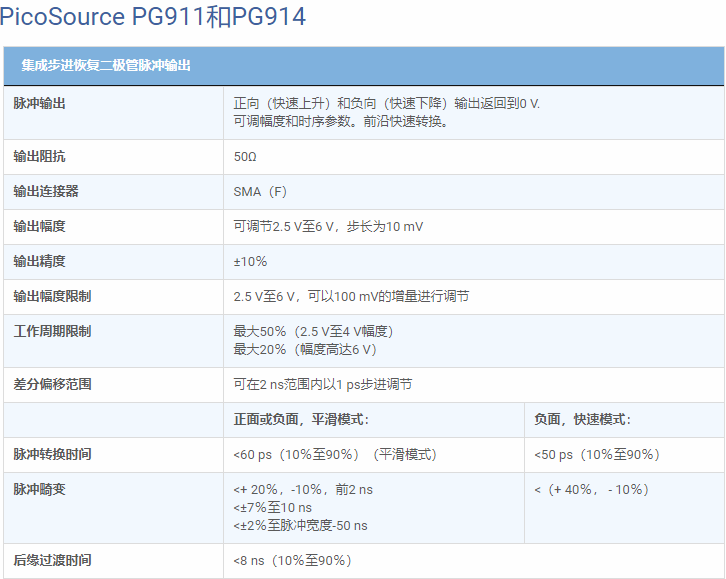 盡管PicoSource PG900發生器體積小,便于攜帶,但它具有很強的沖擊力,集成的步進恢復二極管輸出高達6 V pk,每個輸出為50Ω。這是一個驚人的12 V pk差分脈沖幅度,用于驅動有損路徑或應力系統端口。輸出可以10 mV步進調節至2.5 V pk。提供用戶可設置的幅度限制,以保護更靈敏的系統端口,并為脈沖輸出提供20 dB衰減器,用于小信號和最佳匹配應用。