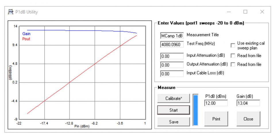 放大器和其他有源器件的1 dB增益壓縮點可以使用功率掃描進行測量,可以是測試頻率,也可以是掃描測試頻率。VNA在低輸入功率時確定放大器的小信號增益,然后增加功率并記錄增益下降1 dB的點。該實用程序使用二階曲線擬合來確定內插的1 dB壓縮點