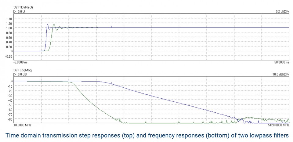 時域反射計可用于測量傳輸線; 特別是由于連接器,損壞或設計錯誤導致的任何不連續的故障距離位置。為實現此目的,PicoVNA 2軟件根據其頻域測量結果確定對階躍輸入的時域響應。使用諧波相關頻率的掃描,反射頻率數據的快速傅里葉逆變換(S11)給出時域中的脈沖響應。然后對脈沖響應進行積分以給出階躍響應。在激勵之后以可測量的延遲發生的臺階的反射分量指示不連續的類型和(假設已知的傳播速度)距校準平面的距離。類似的技術用于從發送的信號數據導出TDT(時域傳輸)信號(S21)。這可用于測量放大器,濾波器和其他網絡的脈沖響應或轉換時間。PicoVNA 2軟件支持Hanning和Kaiser-Bessel低通濾波,用于時域IFFT轉換,保持幅度和相位,并實現最佳分辨率。直流耦合DUT對該方法至關重要。