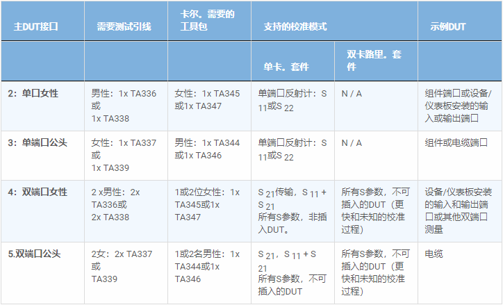 為了在兩種性別的單端口或雙端口測試應用的混合中獲得最佳的整體測試效率和不確定性,我們建議使用這種雙端口,可插入的測試引線和校準標準配置,并根據需要使用額外的測試端口適配器。然后使用測試引線端口或經過調整的測試端口提供所有校準模式。