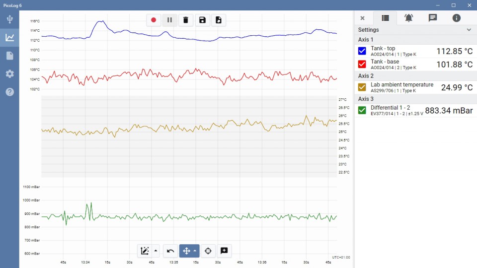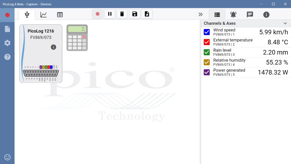 從這里開始捕獲很簡(jiǎn)單:插入記錄器,添加頻道,按Record,然后記錄!PicoLog 6還包括許多其他功能,以滿足更高級(jí)的數(shù)據(jù)記錄需求。