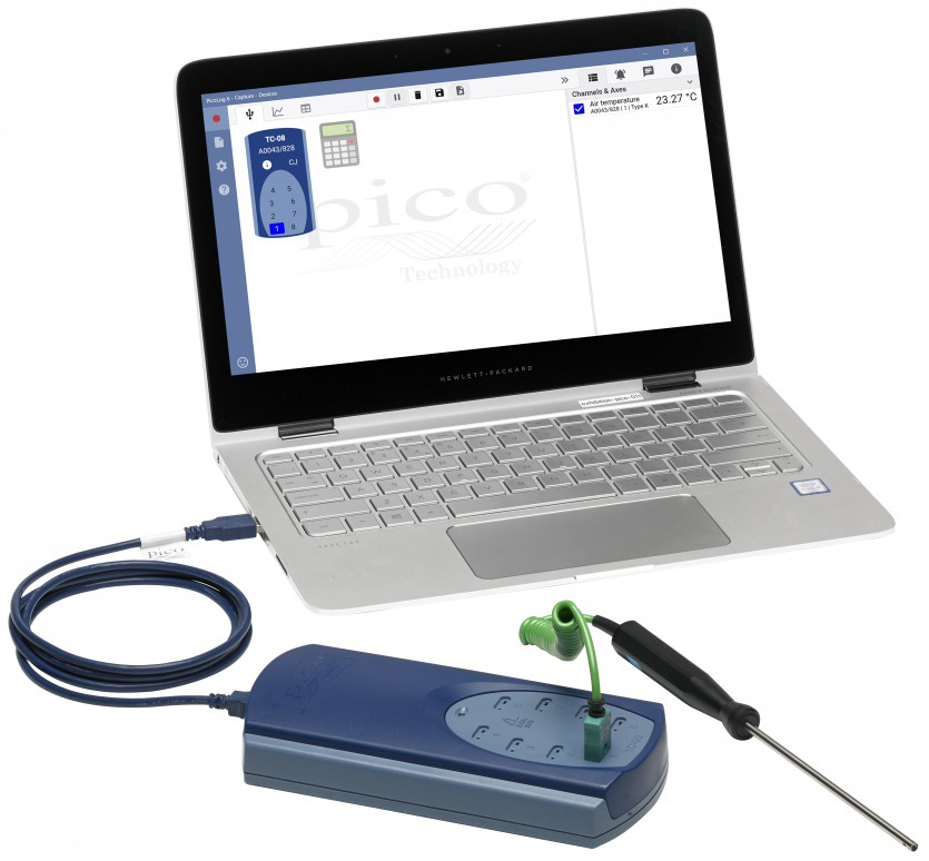 使用TC-08進(jìn)行溫度數(shù)據(jù)采集非常簡(jiǎn)單 - 只需將TC-08插入計(jì)算機(jī)的USB端口(無需外部電源),連接熱電偶,即可測(cè)量溫度。