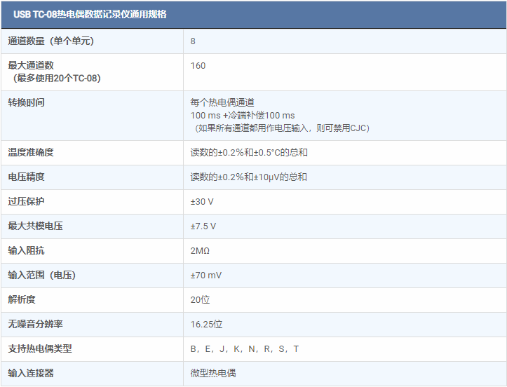 TC-08熱電偶數(shù)據(jù)記錄儀設(shè)計(jì)用于使用任何帶有微型熱電偶連接器的熱電偶測(cè)量各種溫度。Pico提供各種合適的熱電偶(參見附件)。